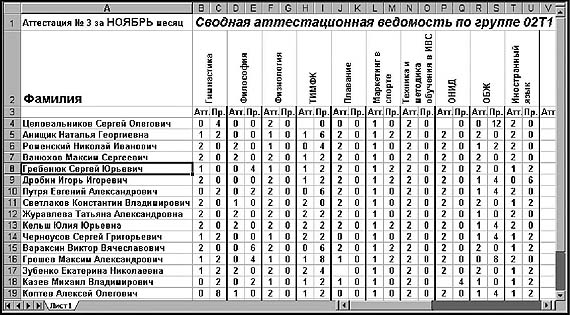 Рис. 3. Сводная ежемесячная аттестационная ведомость группы