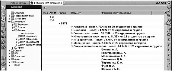 Рис. 2. Вид для анализа обработанных аттестационных ведомостей по каждой из учебных дисциплин в рамках курса